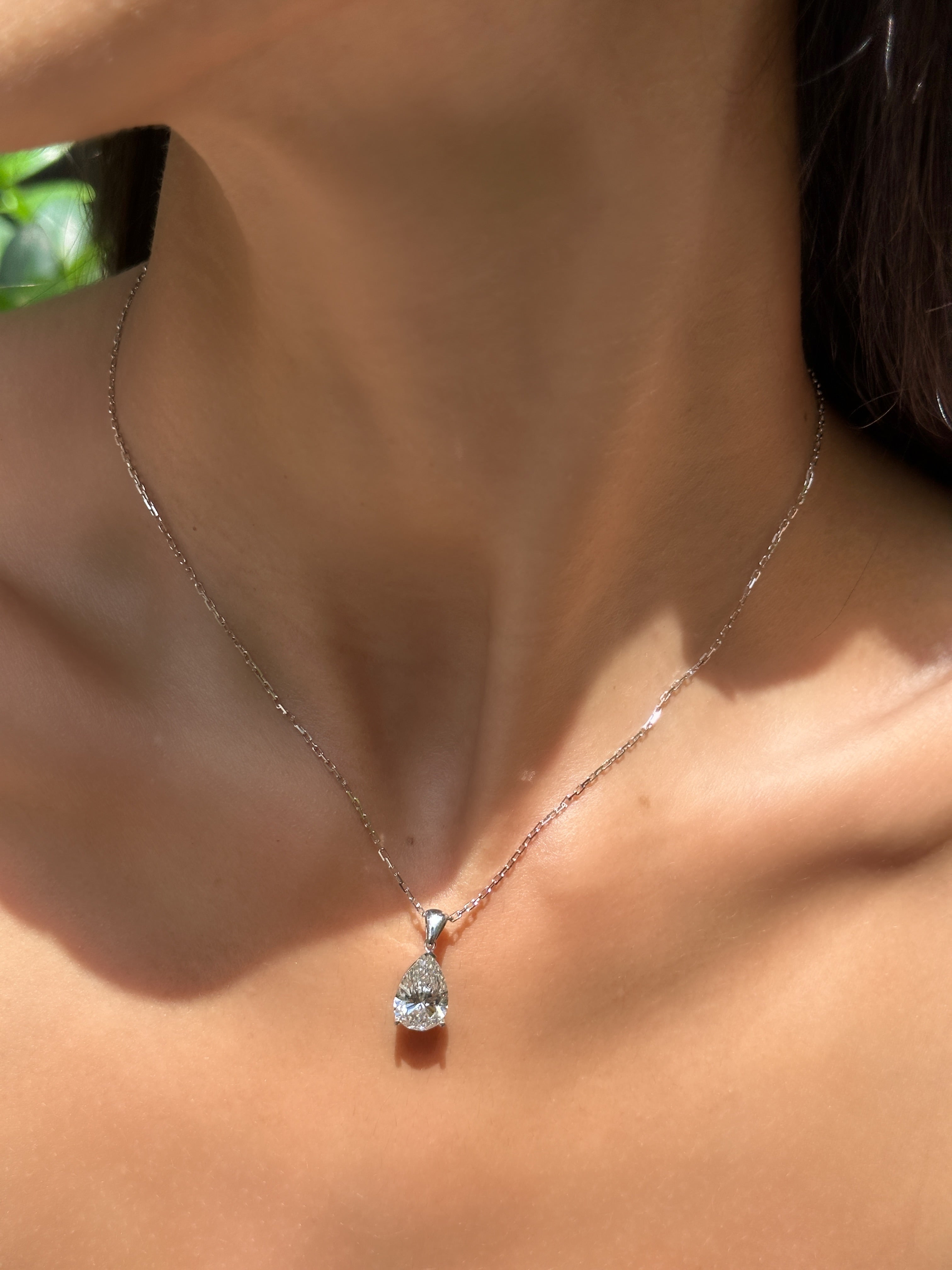 Exquisite Pear Diamond Pendant Necklace - Available in 1, 2, and 3 Carat Options"