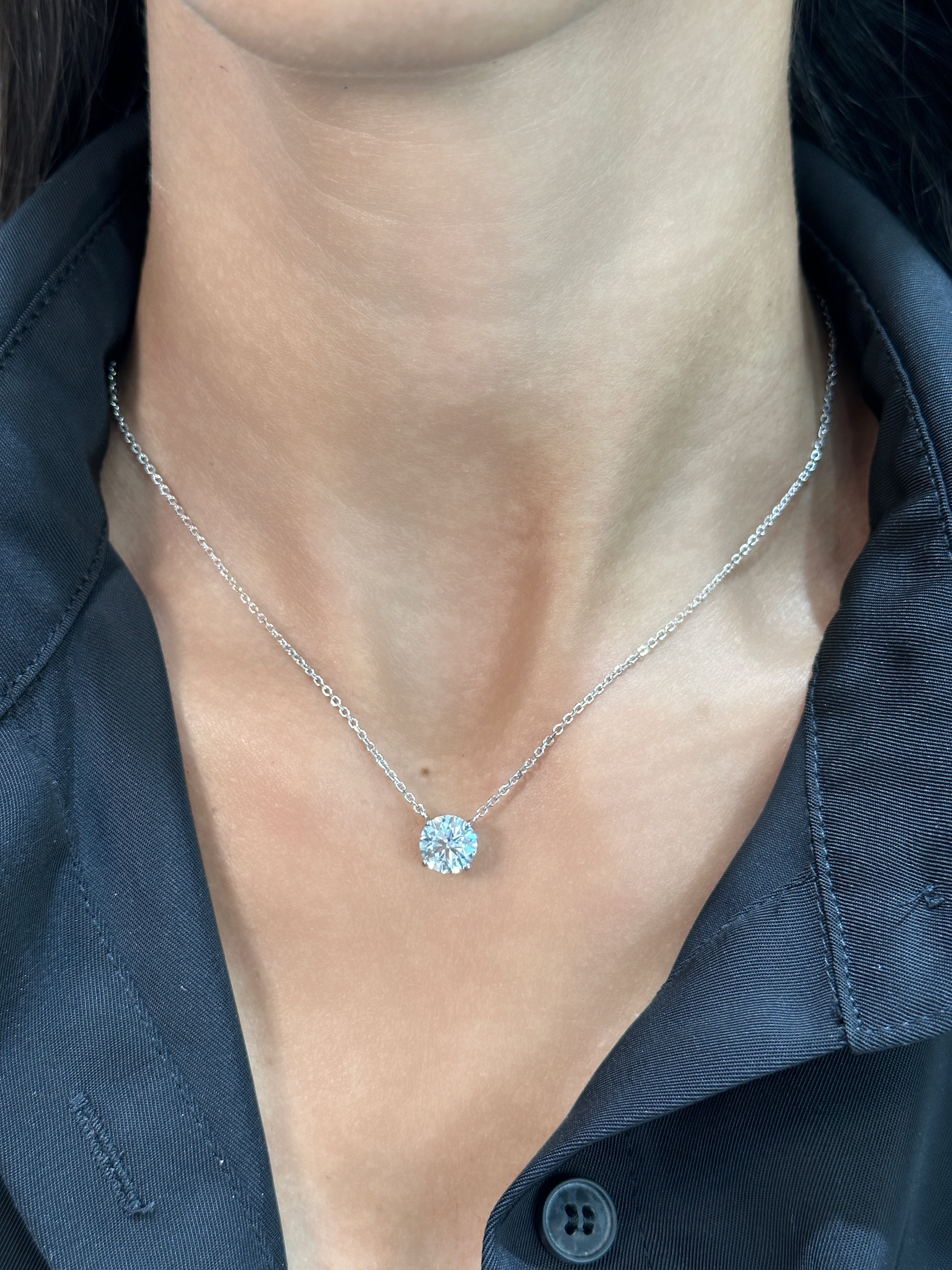 Classic Round Diamond Pendant Necklace - Available in 1, 2, and 3 Carat Options