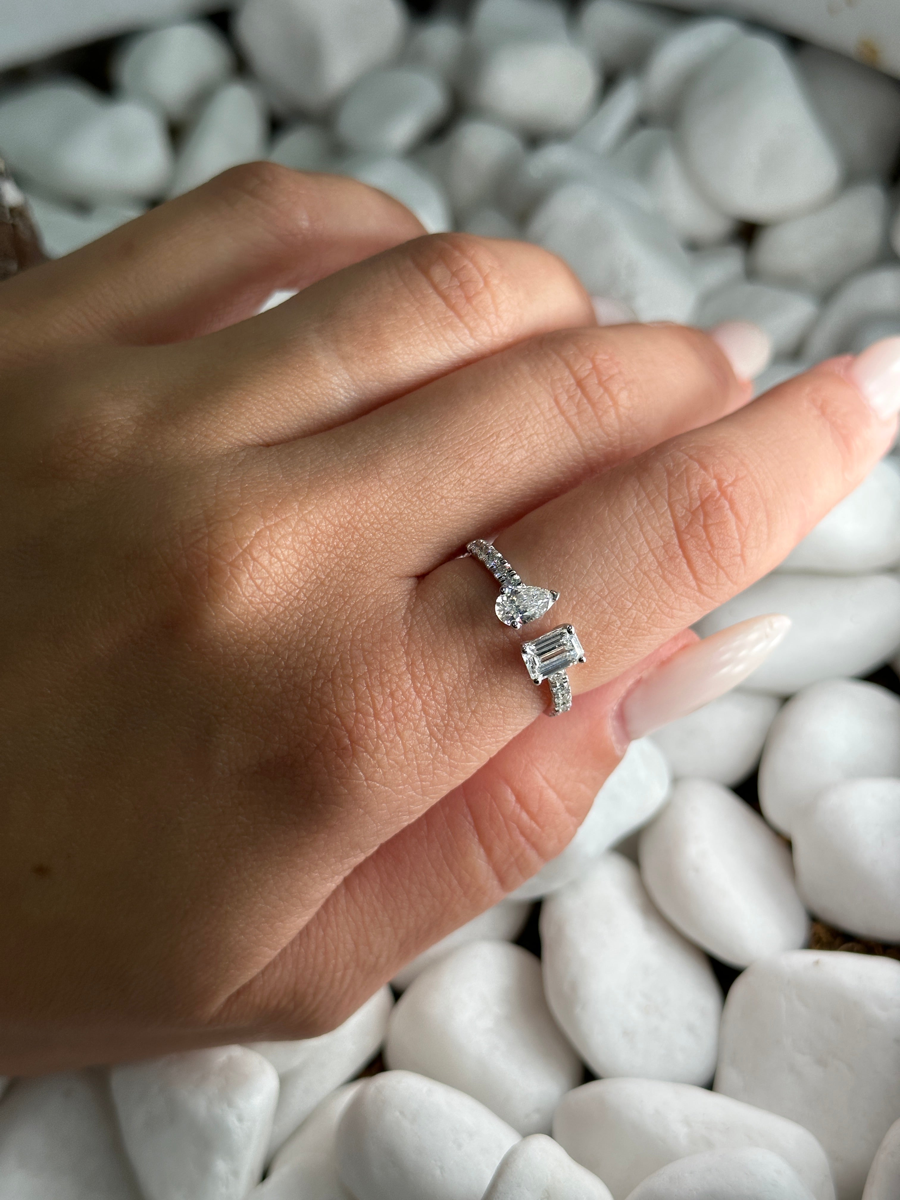 2 Stone Pear & Emerald Ring in 14KT White Gold"