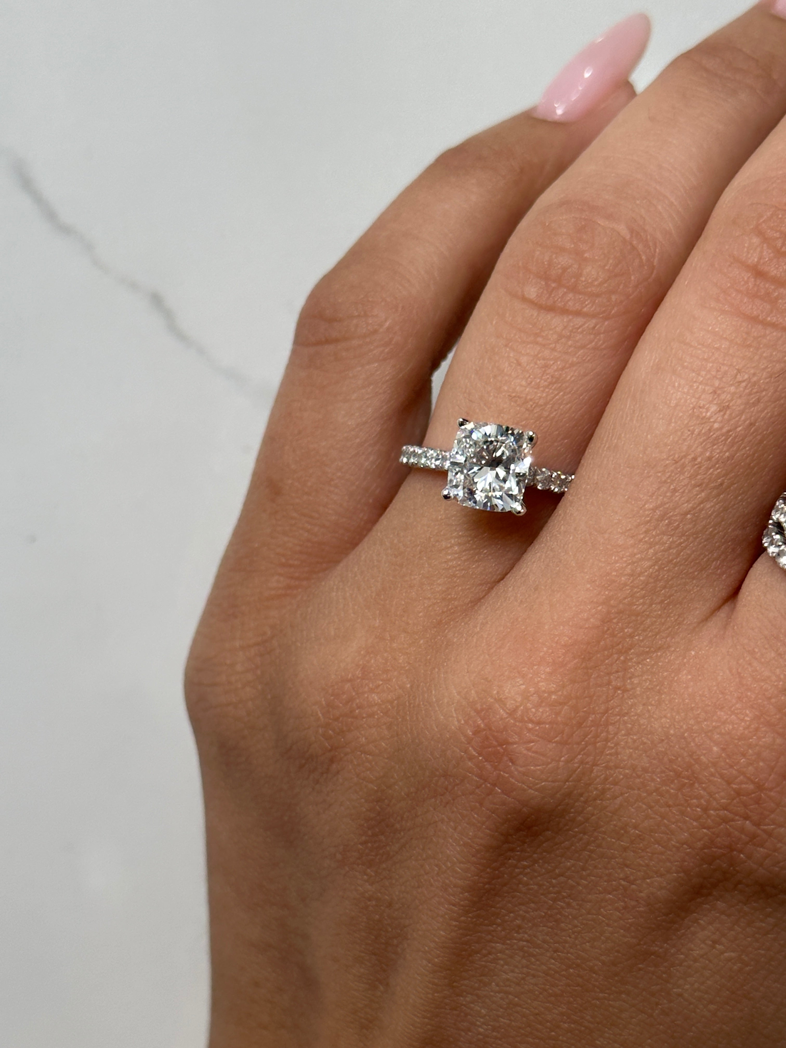 2.17 CT Lab Cushion Cut F VS1 Engagement Ring in 14KT White Gold