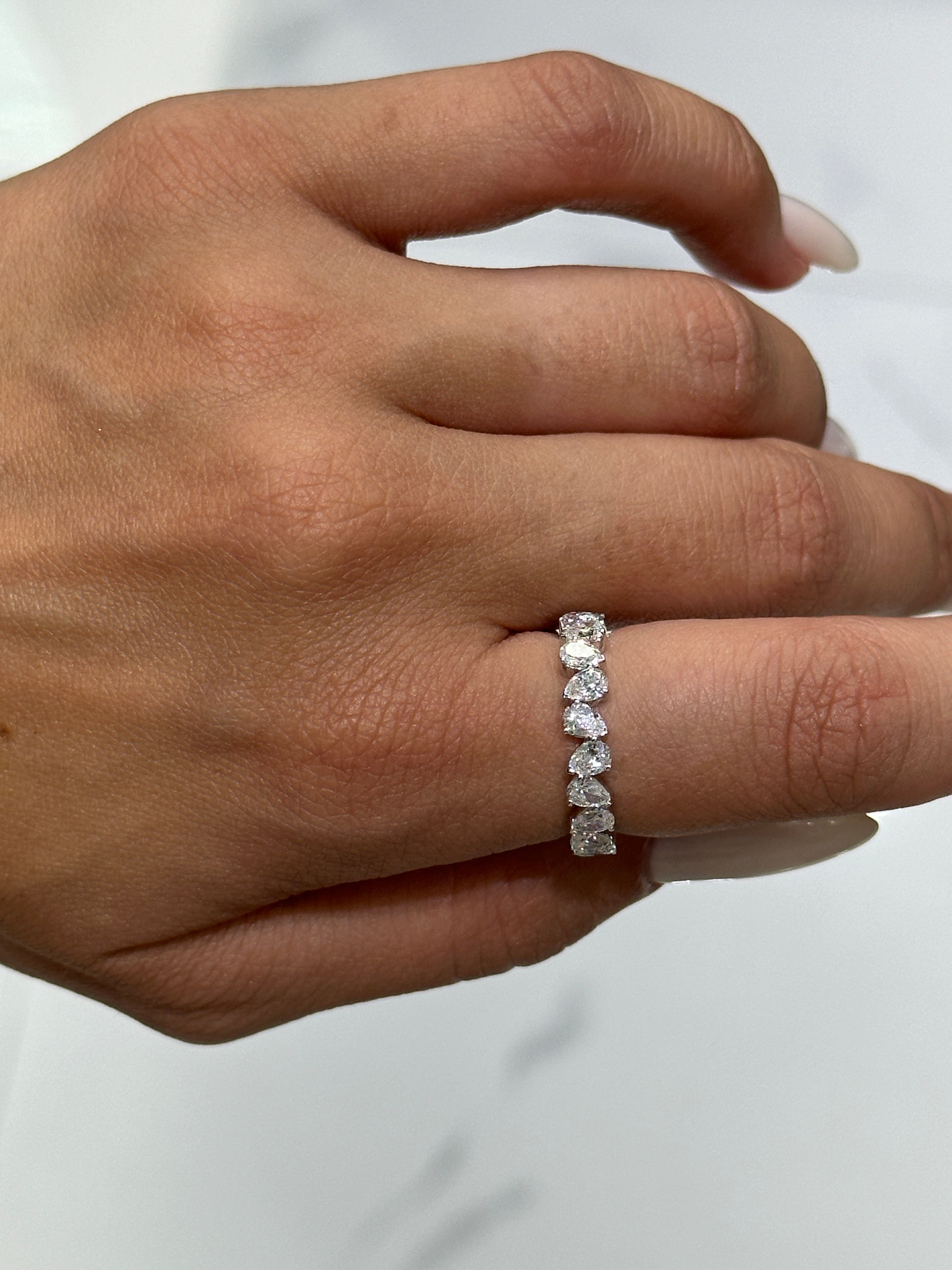 2.89 Carat Lab Pear Shape Full Eternity Band in 14KT White Gold