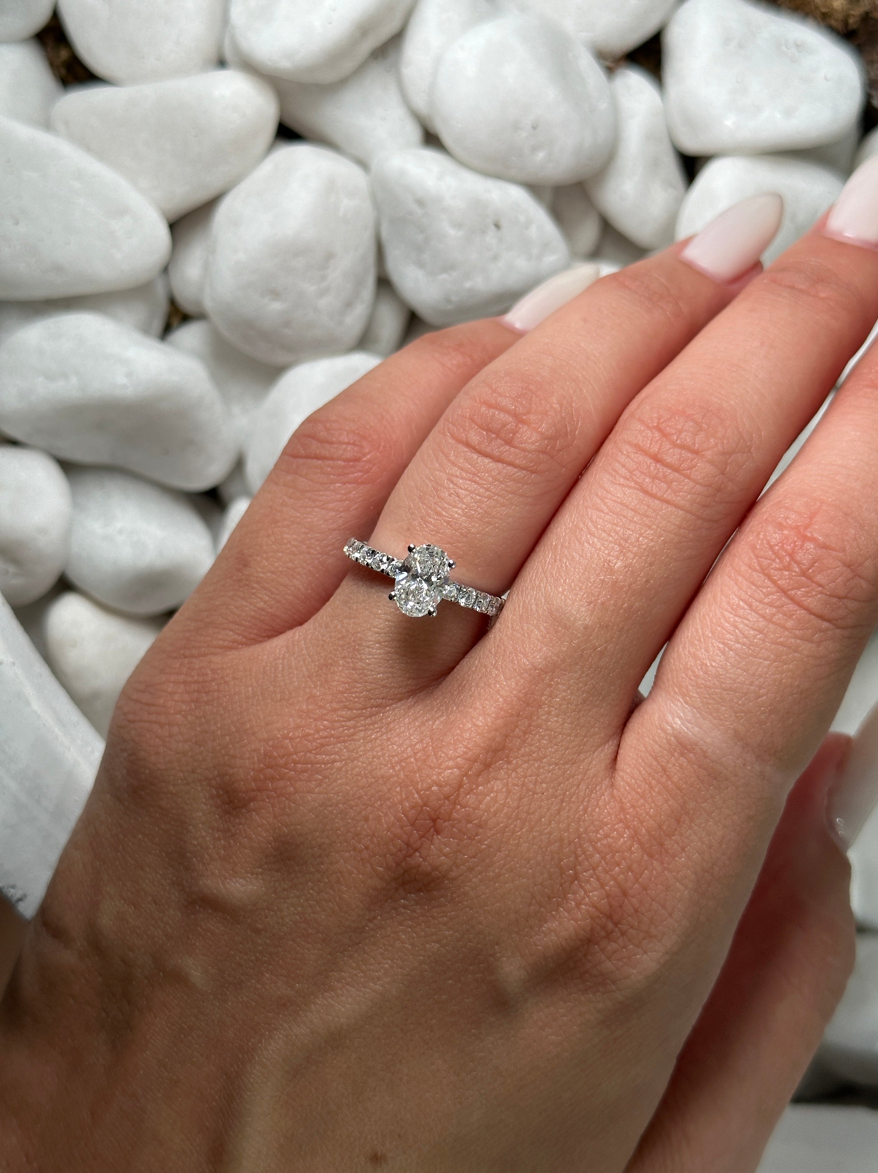 1.50 CTW Lab Oval Cut Engagement Ring with Pave Setting in 14KT White Gold - D-F VS