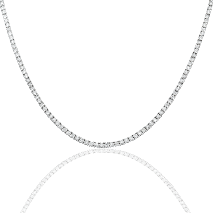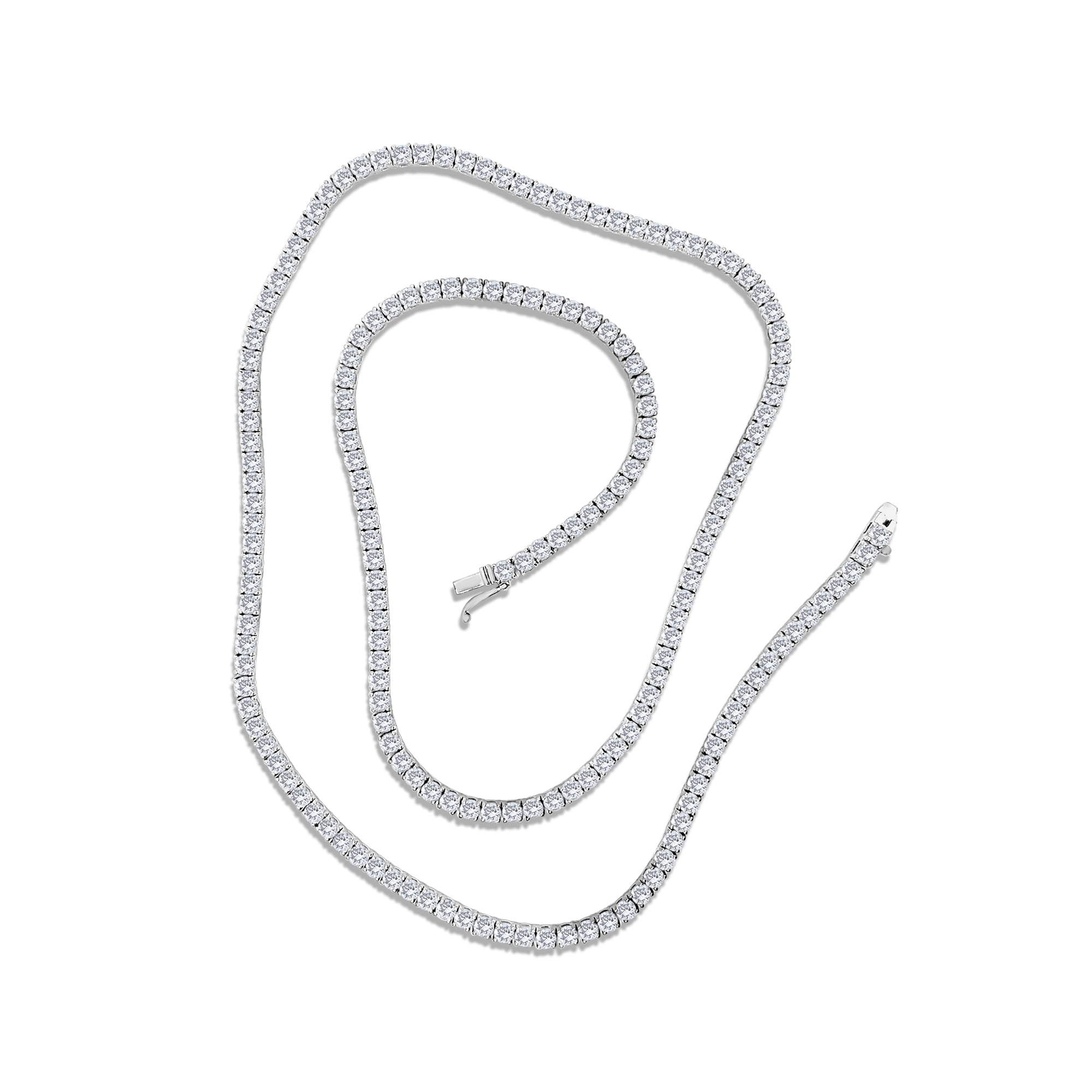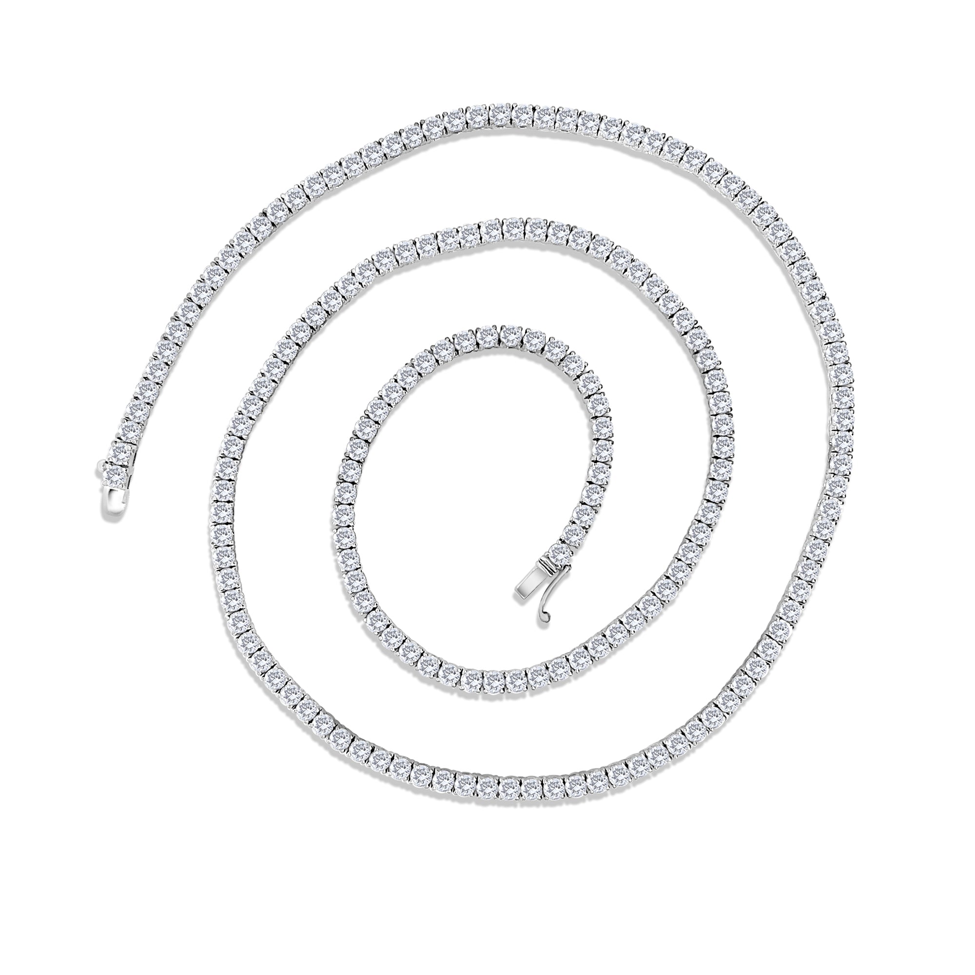 Immerse yourself in the allure of our exquisite LAB Tennis Necklace, a dazzling piece that radiates opulence and elegance. This enchanting necklace boasts a brilliant array of lab-created diamonds, totaling an impressive 18 carats, set in a lustrous 14KT white gold chain.