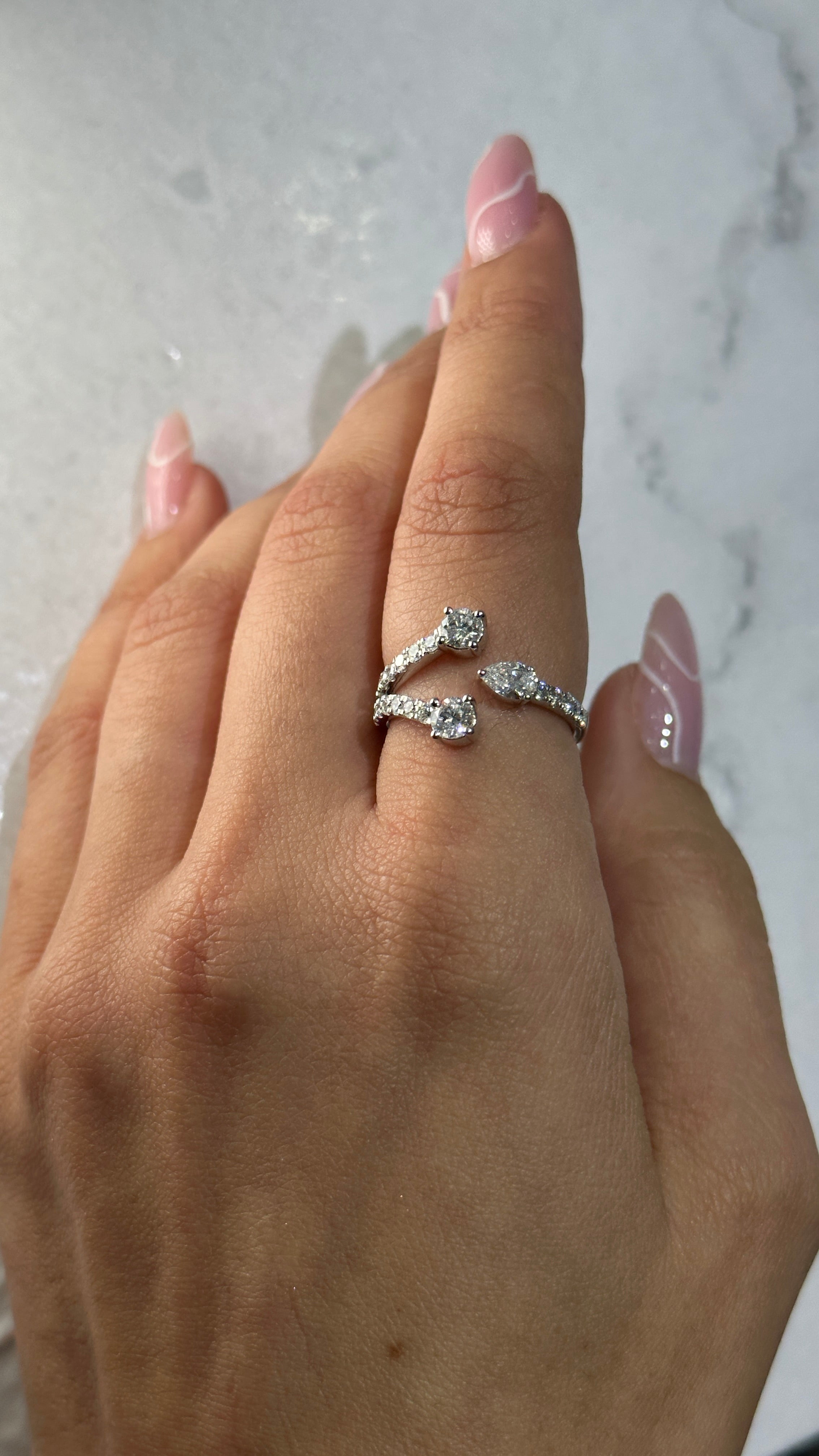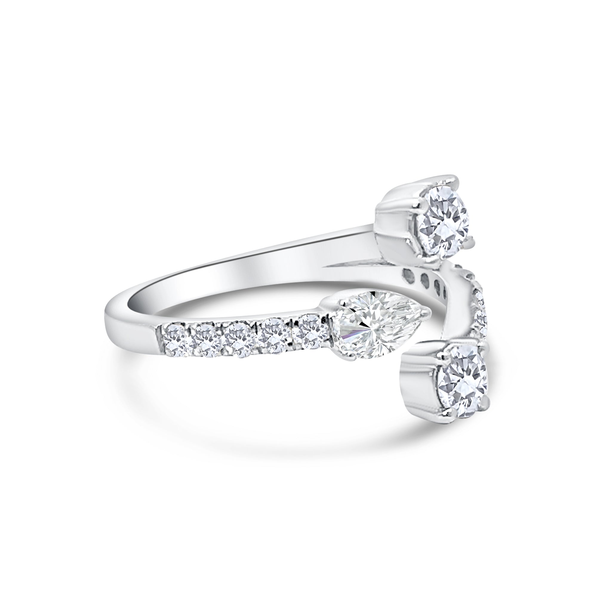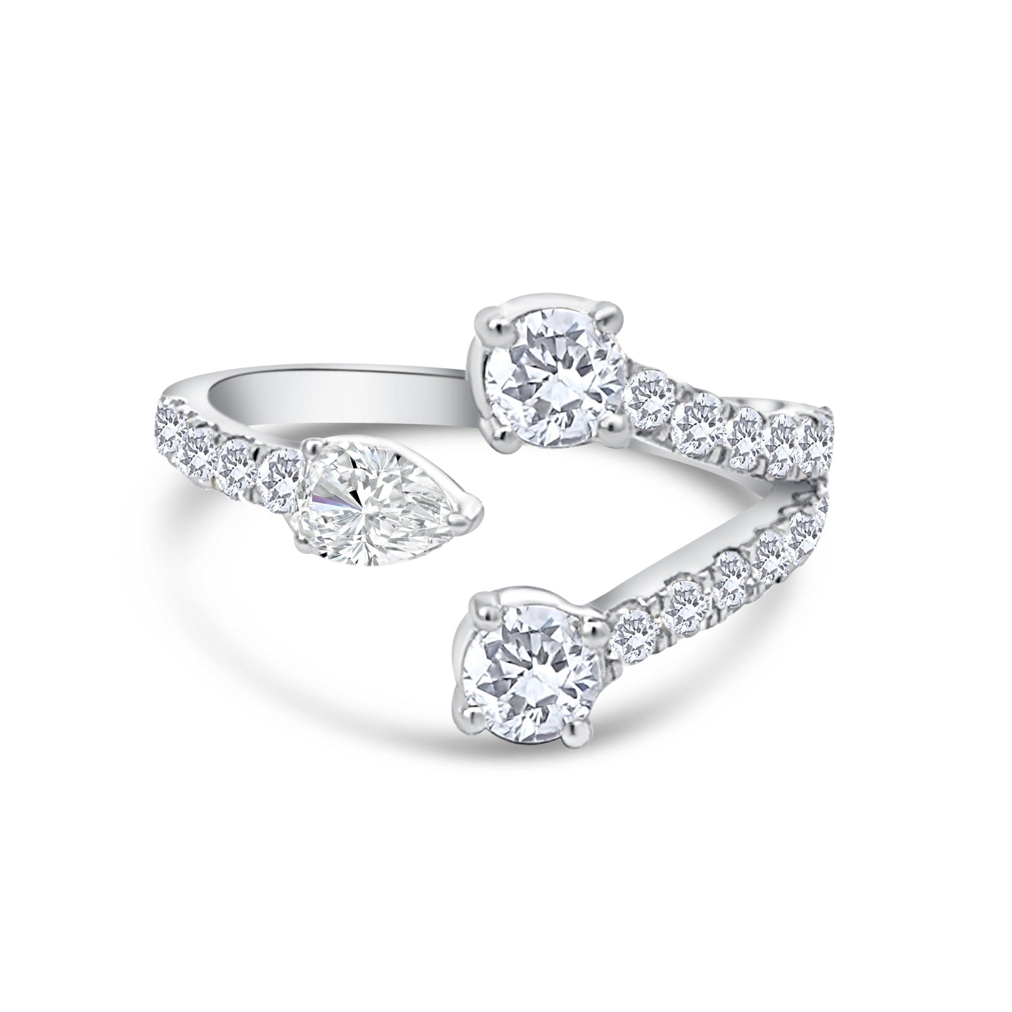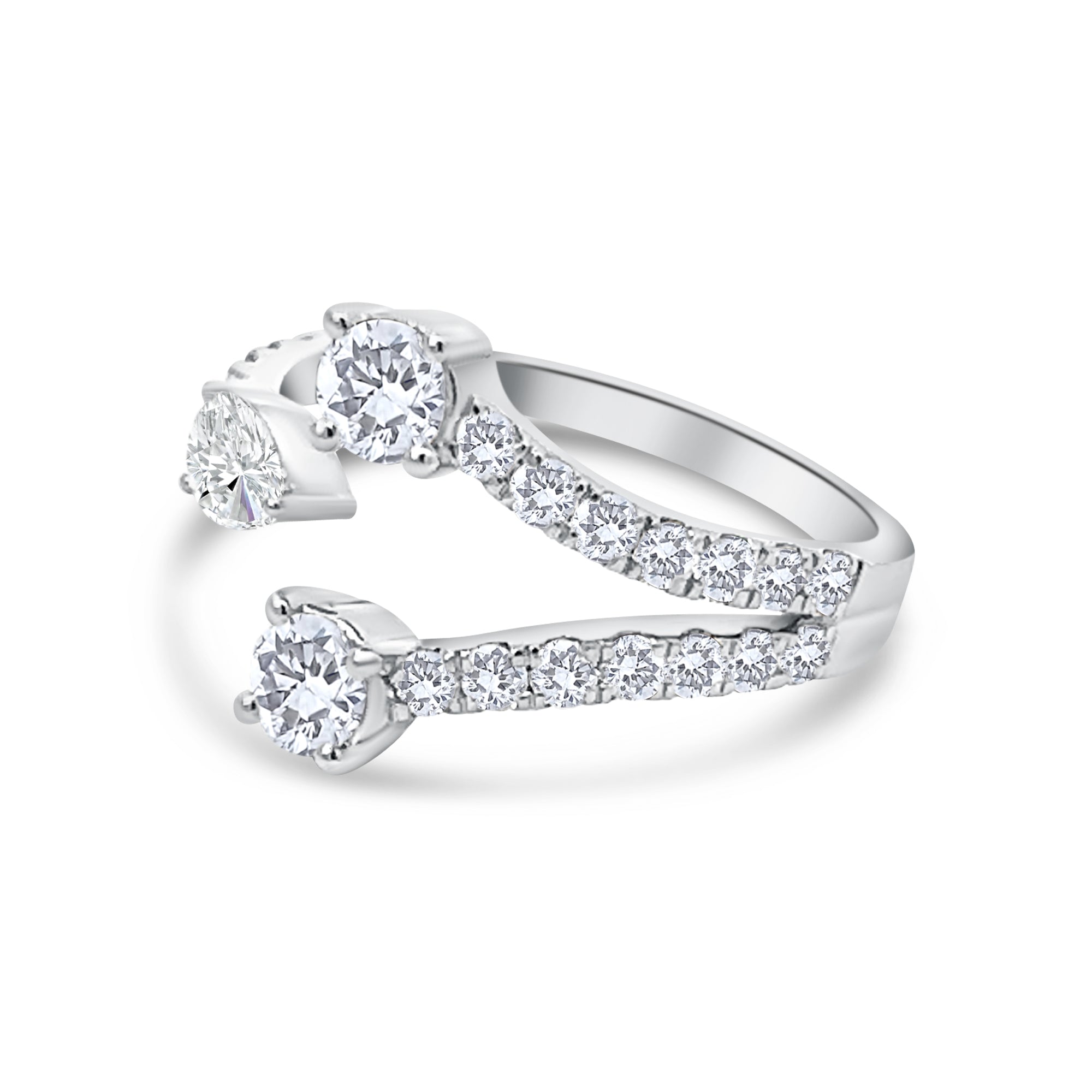 Introducing our captivating LAP 3 Stone Ring, a true masterpiece that embodies elegance and sophistication. This exquisite ring showcases a harmonious combination of lab-created gemstones - a dazzling pear-cut stone and two scintillating round-cut gems - totaling 1.221 carats, all set in a lustrous 14KT white gold band.