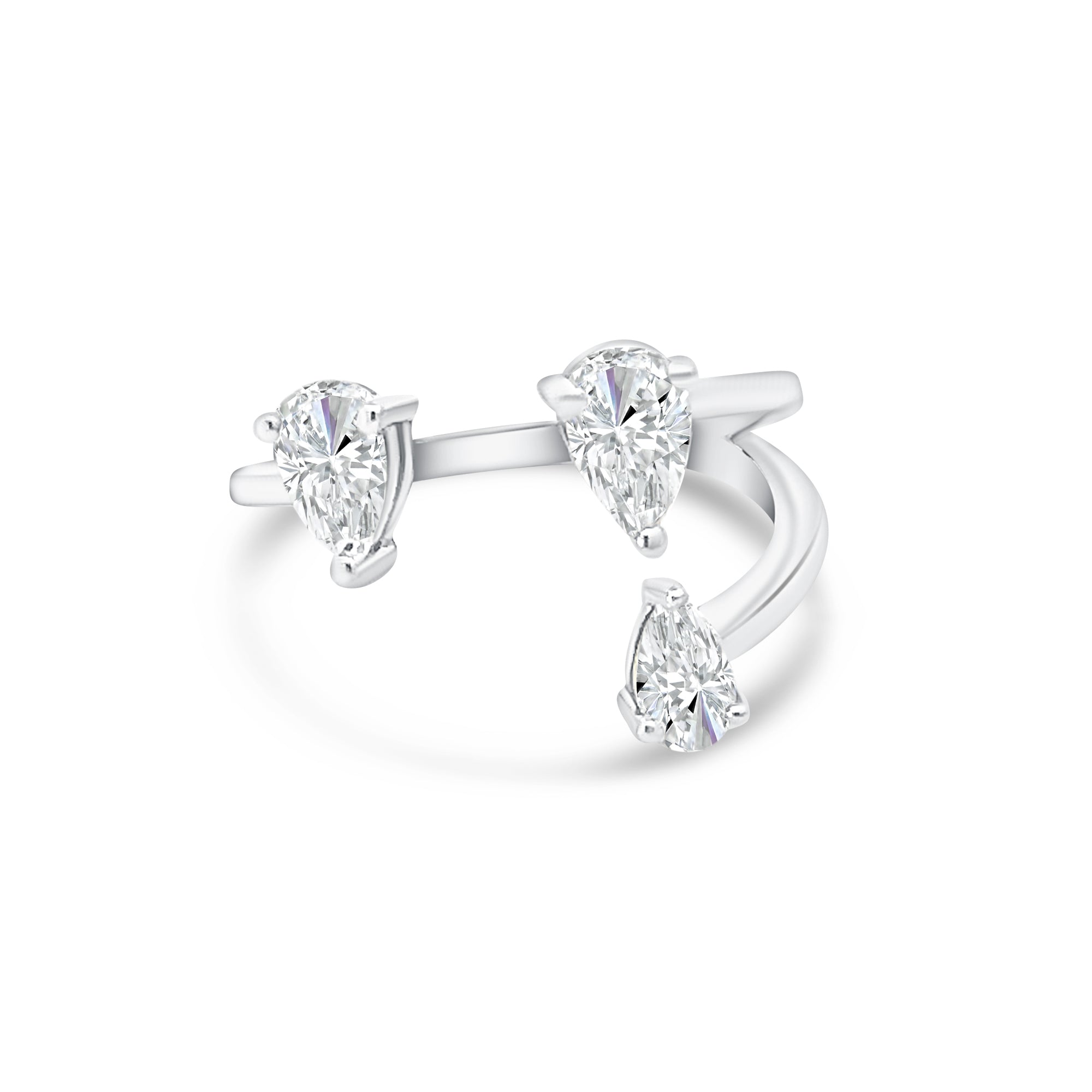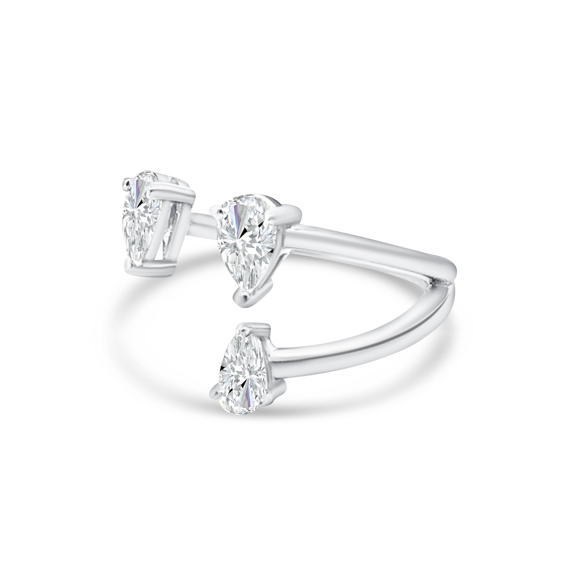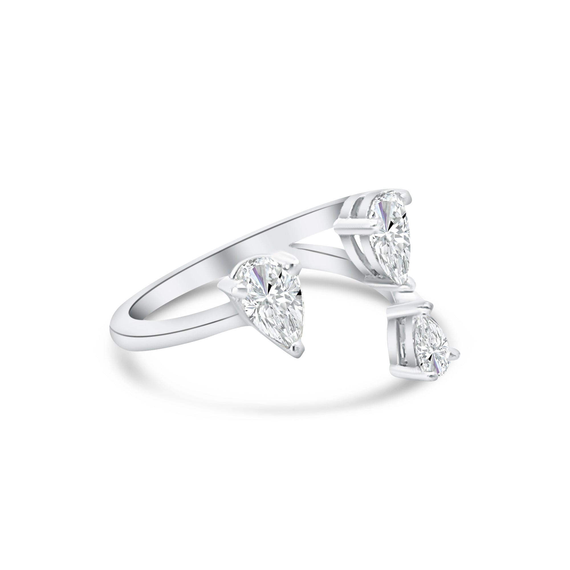 LAB 3 PEAR STONES RING 14KT WHITE GOLD - 0.75CT