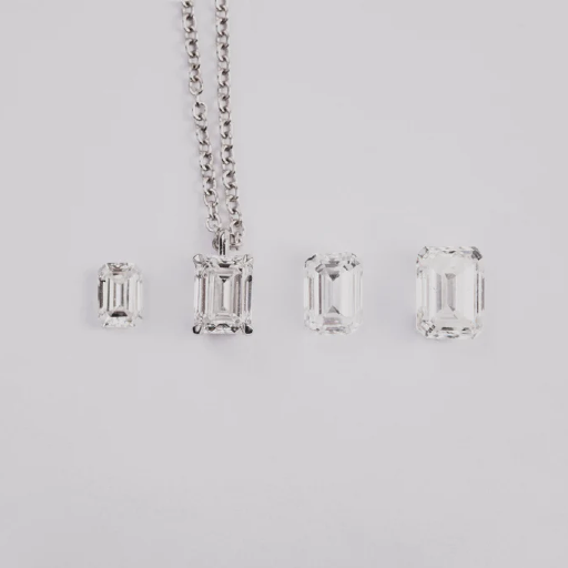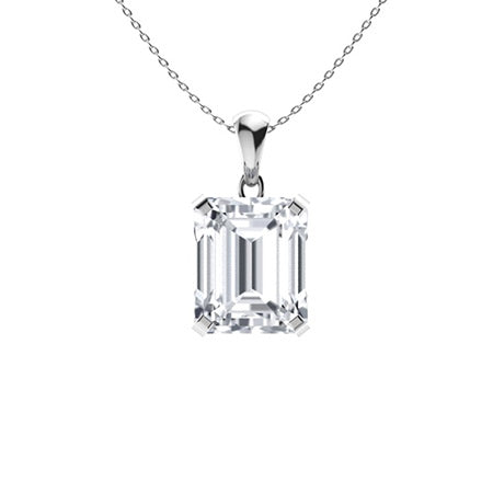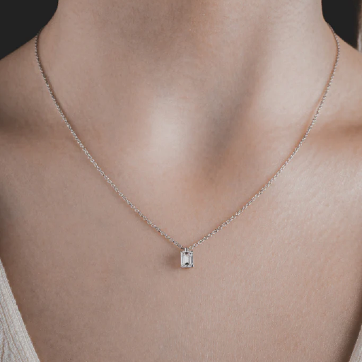 Showcasing the refined beauty of an emerald cut, this diamond pendant necklace is the epitome of understated luxury. The crisp lines and step-cut facets of the center stone create a hall-of-mirrors effect, radiating a quiet brilliance. Suspended from a delicate chain, the pendant offers a sleek silhouette perfect for both everyday wear and special occasions.